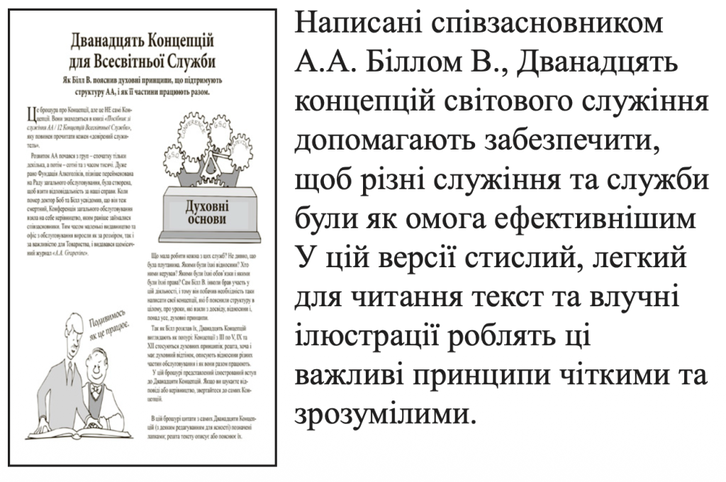 Мета семінару : Семінар “12 Концепцій Обслуговування АА” допоможе глибше зрозуміти, як функціонує співдружність та як зберігається її єдність і ефективність в служінні. Концепції — це духовний захист структури АА.